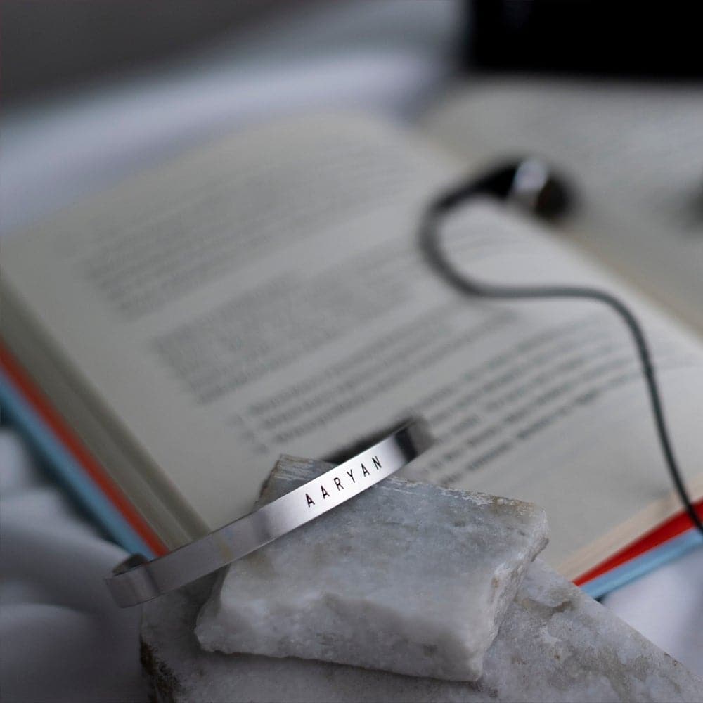 Crafted from high quality silver, this Silver Kada can be personalised with your initials or name. The perfect combination of style and sentiment, this Kada is a timeless accessory that will elevate any outfit. Express your individuality with this custom-made piece.